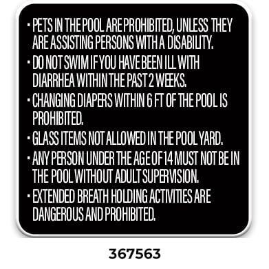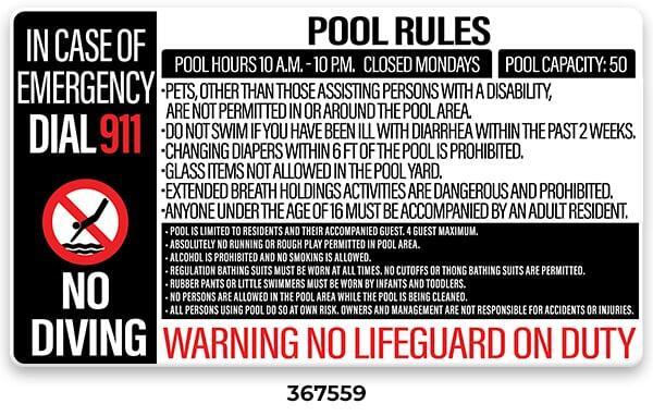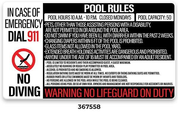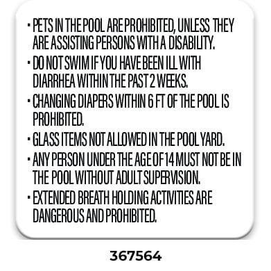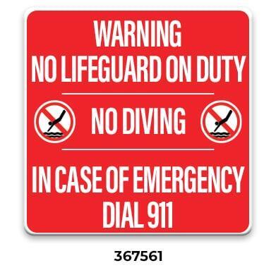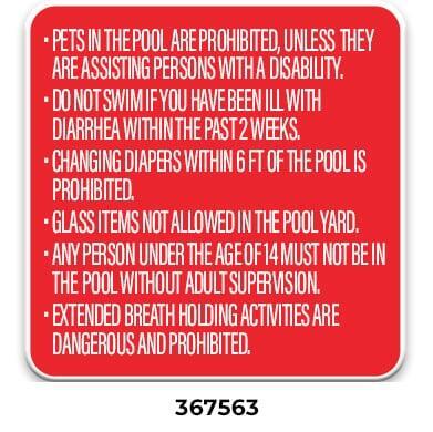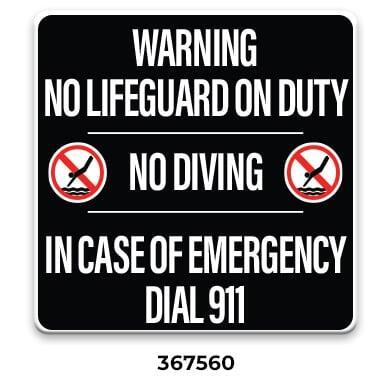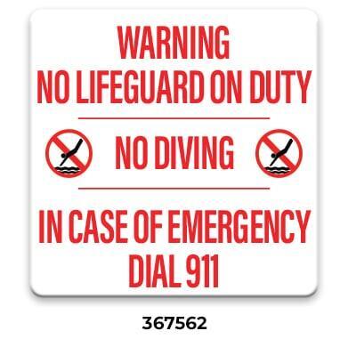 ** Required with phone location by every emergency pool phone. Required even when ordering the All-In-One Pool Sign (367558 or 367559)