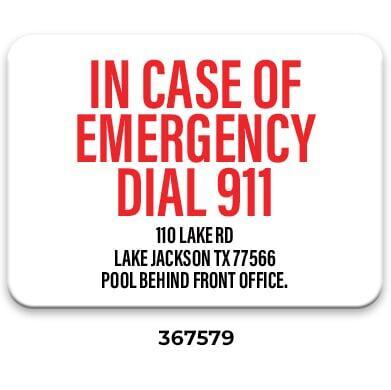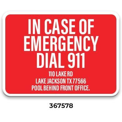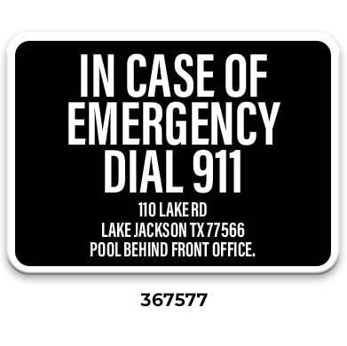 ** Required with phone location by every emergency pool phone. Required even when ordering the All-In-One Pool Sign (367558 or 367559).